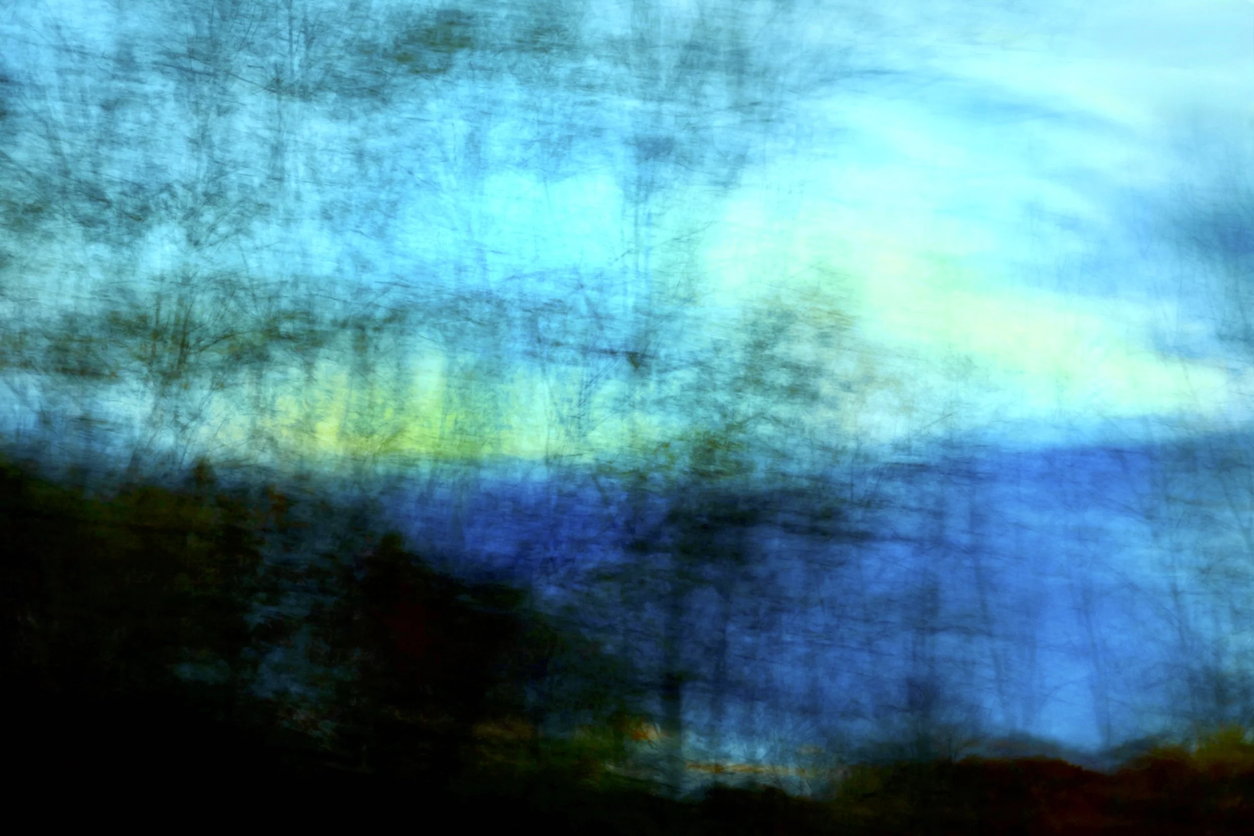 Blue Waves is a series of abstract fine art photographs inspired by nature and the fabric of the universe. Experimenting with space and time, I created layers of space and movement through time. Thus, the effect was a texture of earth, sky, and trees. I explored shades of blues and greens with string-like accents of rich colors.